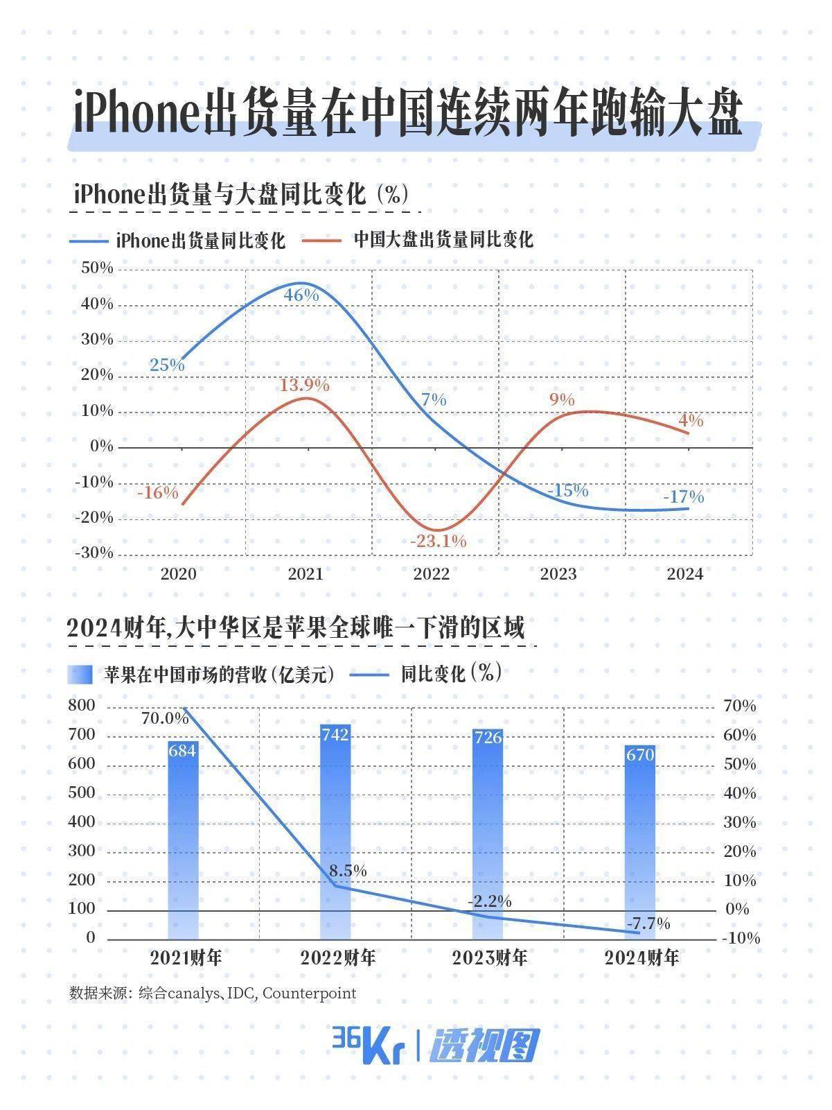 苹果的紧迫感源于中国市场的持续低迷。自2023年起,其大中华区出货量连续两年下滑,跌幅分别达15%与17%,市场份额排名跌出前三。财报显示,2024年大中华区是苹果全球唯一营收下滑的区域。与此同时,华为两年前强势回归,安卓阵营整体份额持续扩张,进一步压缩苹果的生存空间。