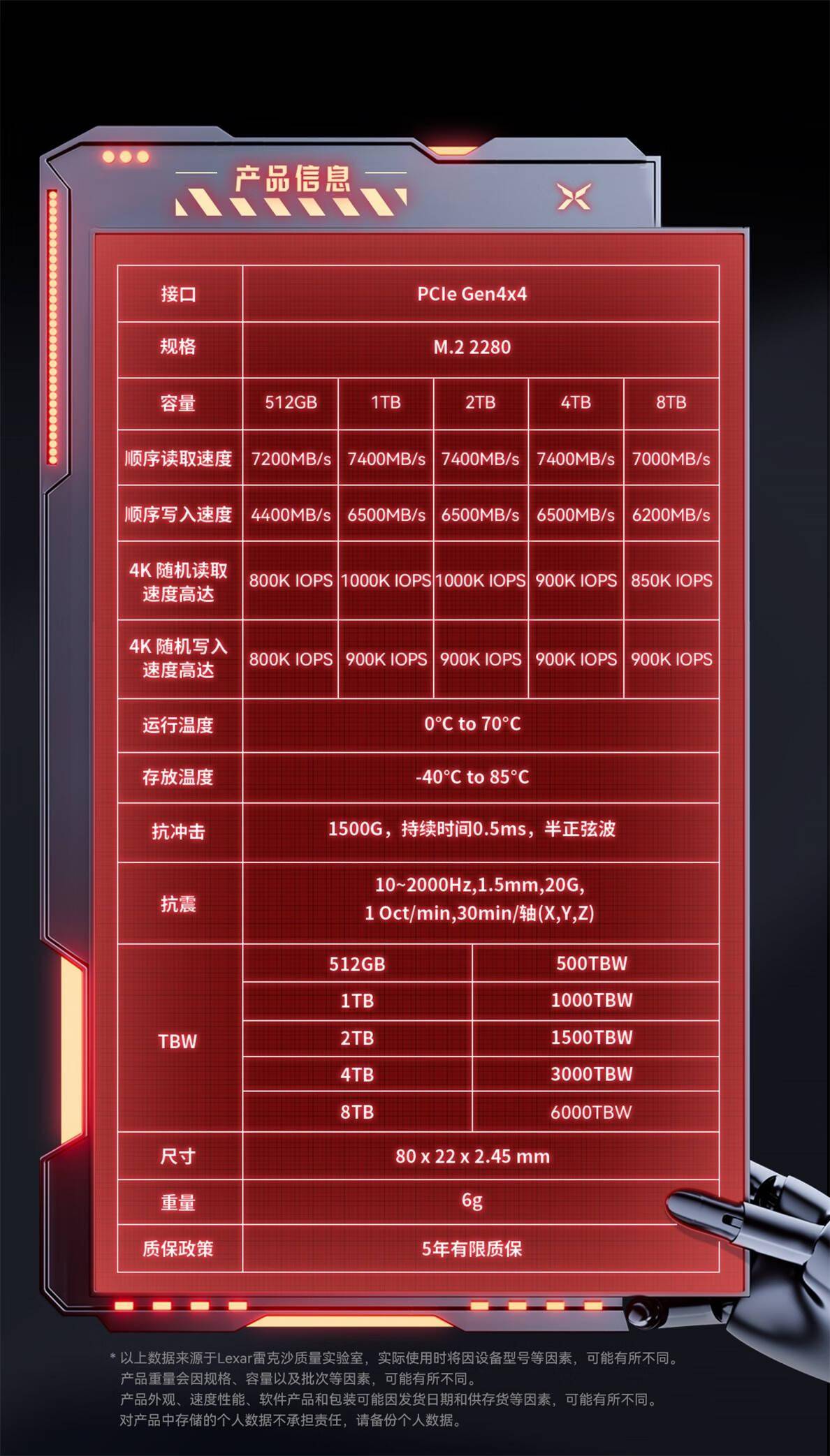 雷克沙近日推出了全新8tb版本的pcie 4.0 nvme m.2 2280固态硬盘——ares,定价为5999元,这一举措为大容量存储需求的用户带来了新选择。该款固态硬盘不仅容量充足,性能也相当出色。