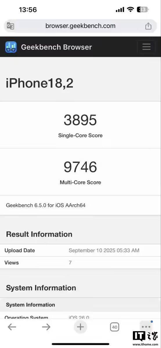 geekbench跑分平台最新数据显示,型号为"iphone18,2"的设备(经核实对应iphone 17 pro)搭载的a19 pro芯片表现抢眼。该芯片单核成绩达3895分,多核成绩9746分,较上一代a18 pro芯片(iphone 16 pro平均分:单核3447/多核8576)分别提升13%和14%。与m4 macbook pro对比,单核性能已基本持平(m4单核约3829分),但多核性能因核心数量与散热优势仍保持45%的领先优势(m4多核超14000分)。